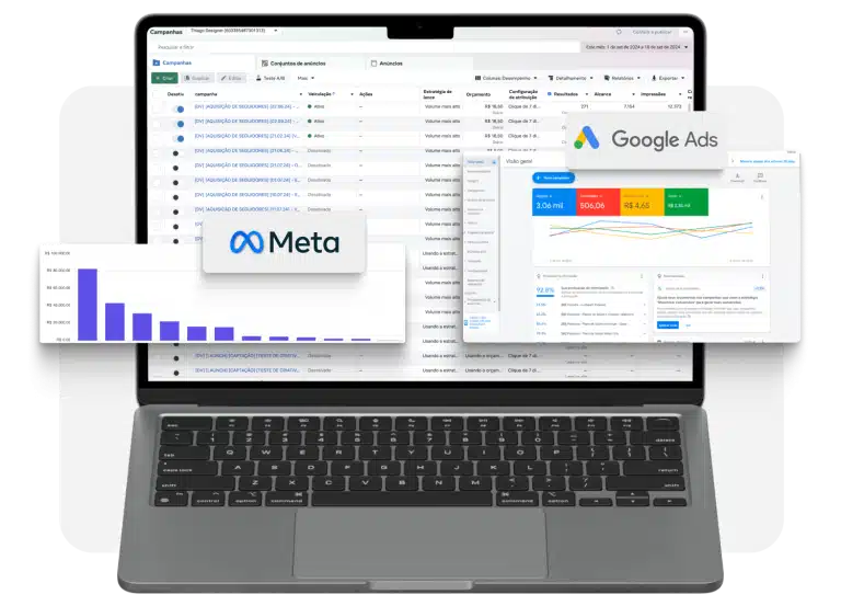 Criamos e gerenciamos campanhas de anúncios online no Google Ads e no Meta Ads, como o Instagram, Facebook e WhatsApp para posicionar sua empresa à frente da concorrência e atrair um fluxo constante de potenciais clientes.